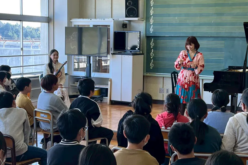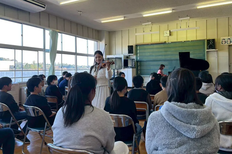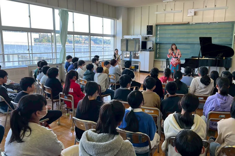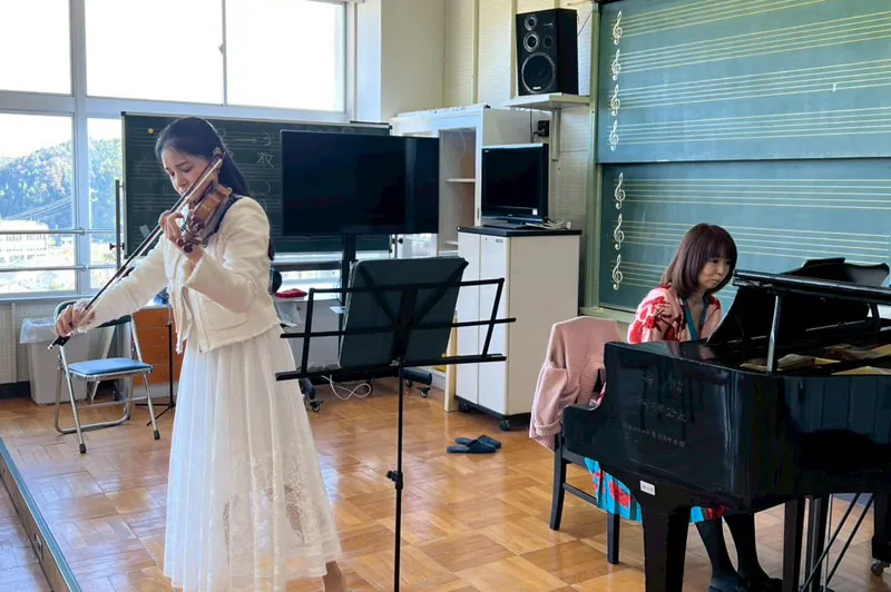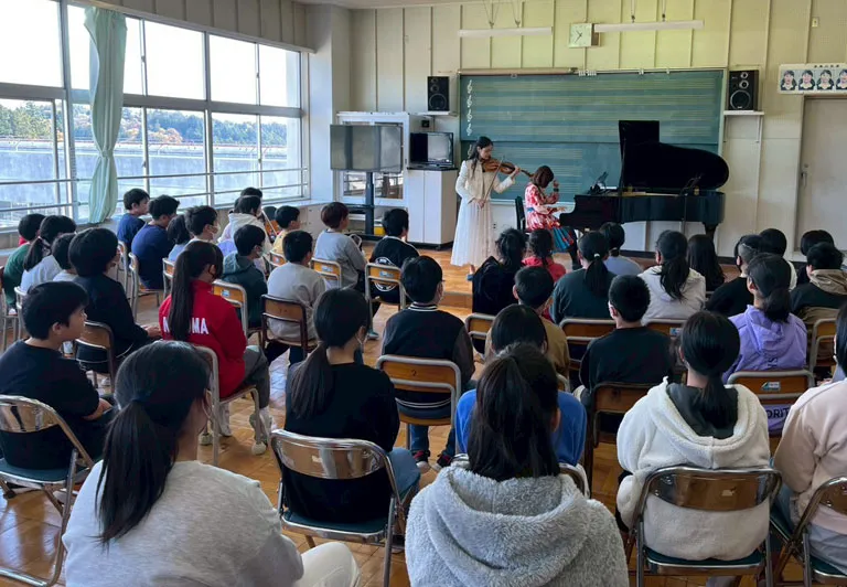 2025年11月11日(火)南三陸町立志津川小学校でピアニスト伊賀あゆみさんと、ヴァイオリニスト鈴木舞さんによる学校コンサートを実施しました。