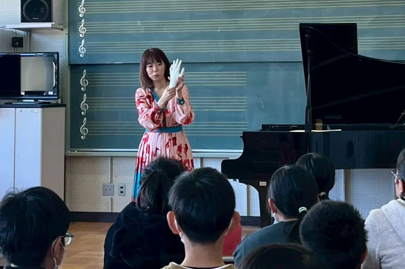 子どもたちは真剣なまなざしで耳を傾け、積極的に発言したり、演奏後には次々と質問をしてくれました。音楽や楽器への関心をまっすぐに向けてくれるその姿に、素直さと柔らかな感受性を感じ、胸が温かくなりました。その率直な反応に触れ、むしろ私のほうが多くの力をいただいたように思います。