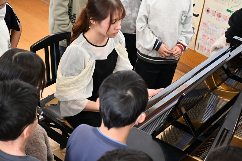 いつも授業で何気なく見ているピアノについて知れたこと、普段はない弦楽器を生で聴き、触れたことで、子どもたちが満足そうな表情で聴いているのが分かりました。