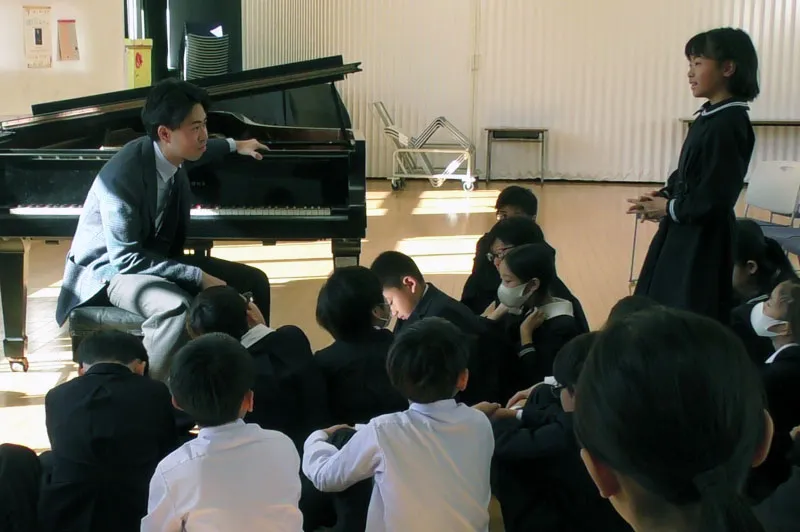 「それから、時間をかけること。みんなと同じ10歳だった頃に、大切にしていたカブトムシが死んだこと、中学生になって今までの音楽観をくつがえされる曲に出会ったこと、それからもっと色々な経験をしてから聴くと、同じ曲でも前には見えていなかったものが見えてきたりする。だから、今日聴いた曲も何年か後にまた聴いて欲しい。その間に、音楽だけでなくたくさんの経験をして欲しい。そして、その時の自分にしか感じられない感情というのを大切にして欲しい」ということを伝えました。
