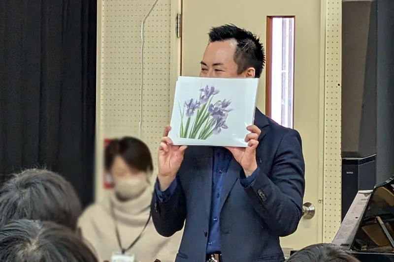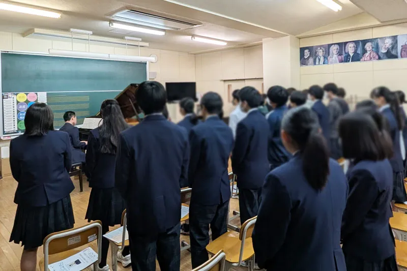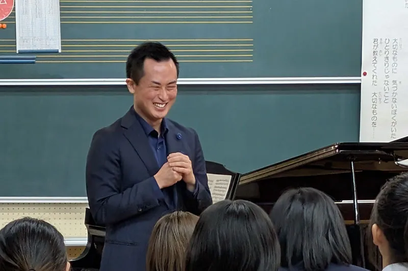 特に、普段学校で接している先生の歌声を間近で聴く場面では、生徒たちが真剣な表情で耳を傾けており、音楽が持つ力を実感している様子が伝わってきました。また、音楽から情景をイメージするコーナーでは、生徒それぞれが自由に感じ取り、音楽の世界を広げていく貴重な時間となったように思います。質問にも丁寧に応じてくださり、演奏以外の面でも学びの多い時間となりました。
