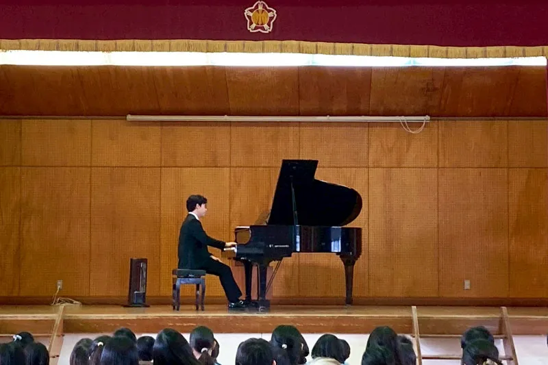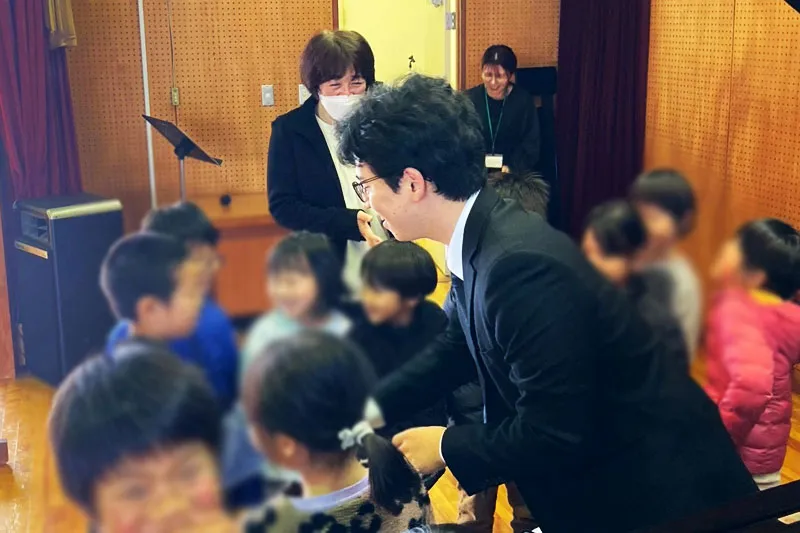 プログラムは子どもたちが聴きやすいように、ショパンの子犬のワルツや革命などどこかで聴いことがあるかもしれない、聴きやすい作品たちを中心にプログラムを組みました。ピアノの周りに集まってピアノの仕組みについて説明したり、楽器を使って一緒に演奏に参加して貰ったりもしましたが、子どもたちが楽しみながら興味を持って参加してくれているのが伝わりました。慣れないコンサートで緊張もありましたが、子どもたちの元気な反応のおかげで、最後には僕も子供達との交流を楽しみながら進めることができました。