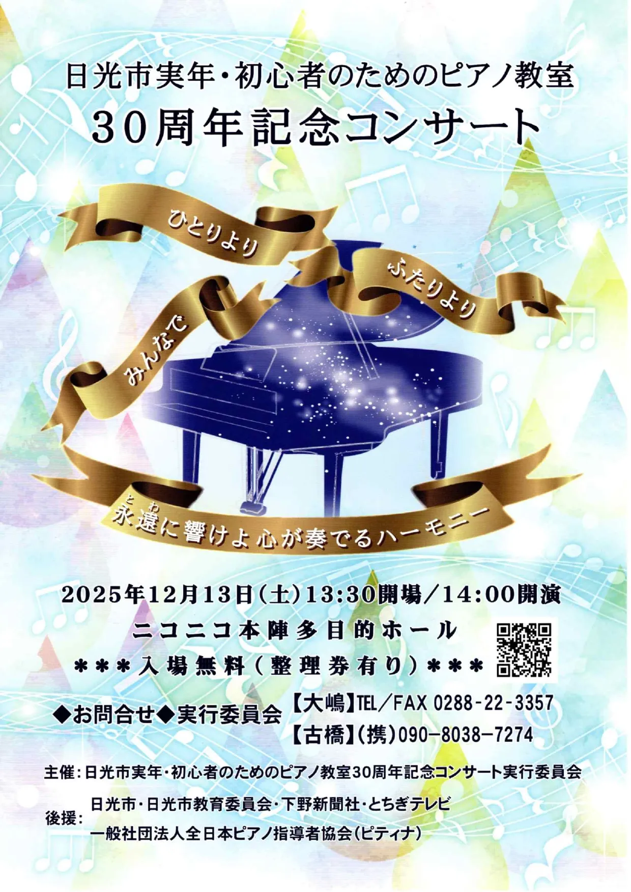 日光市実年・初心者のためのピアノ教室30周年記念コンサート〜ひとりより、ふたりより、みんなで〜永遠(とわ)に響けよ心が奏でるハーモニー