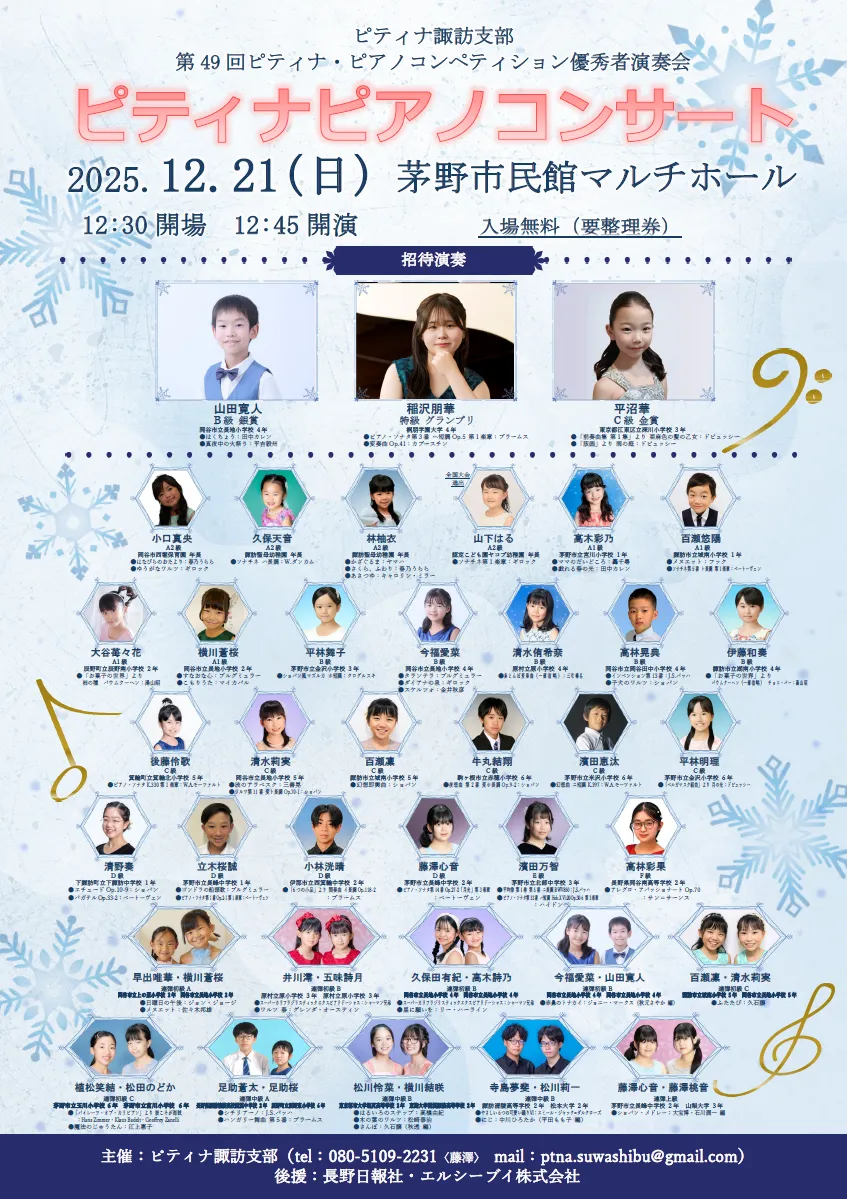 PTNA徳島支部第49回ピティナ・ピアノコンペティション入賞記念コンサート