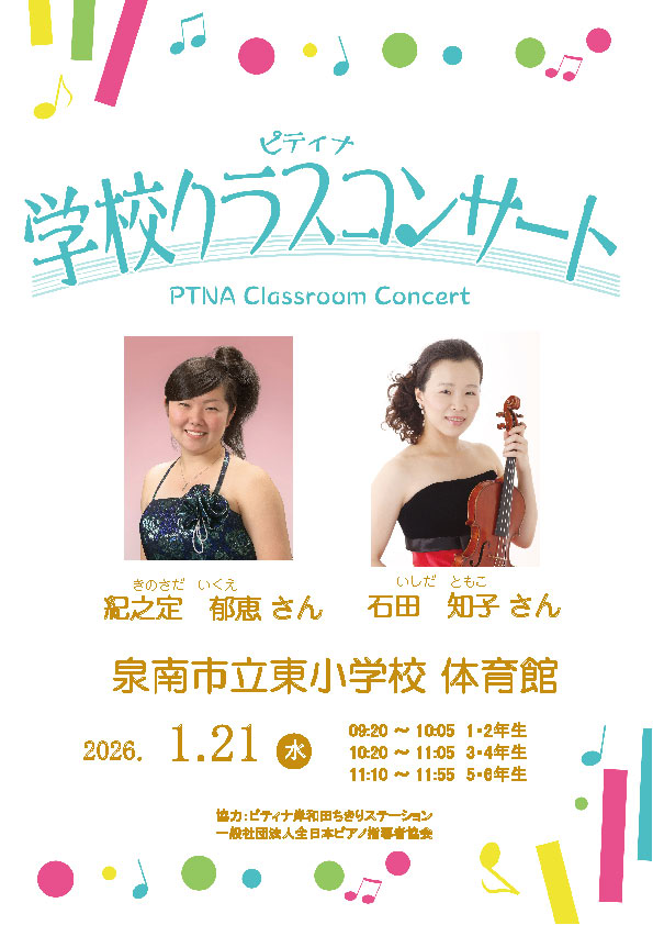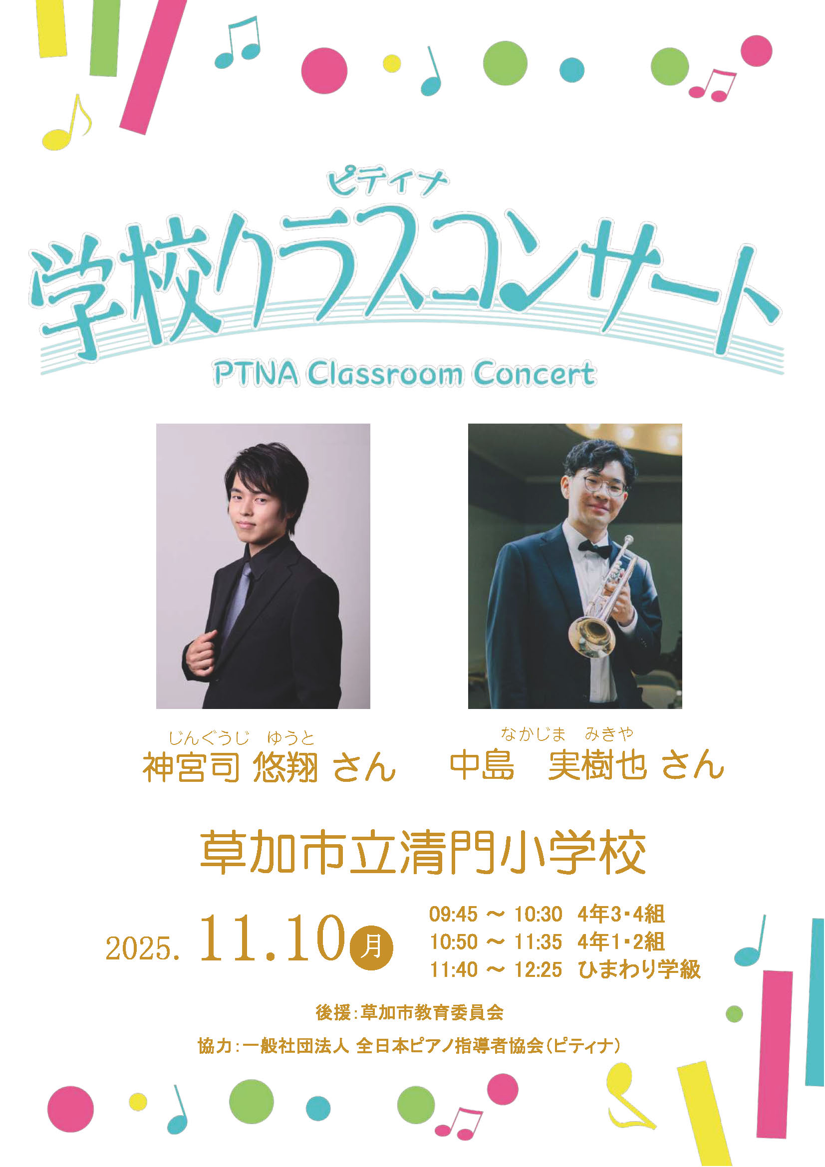 内容:ピアノ(+他楽器)の演奏、楽器紹介、児童との共演、Q&Aなど
